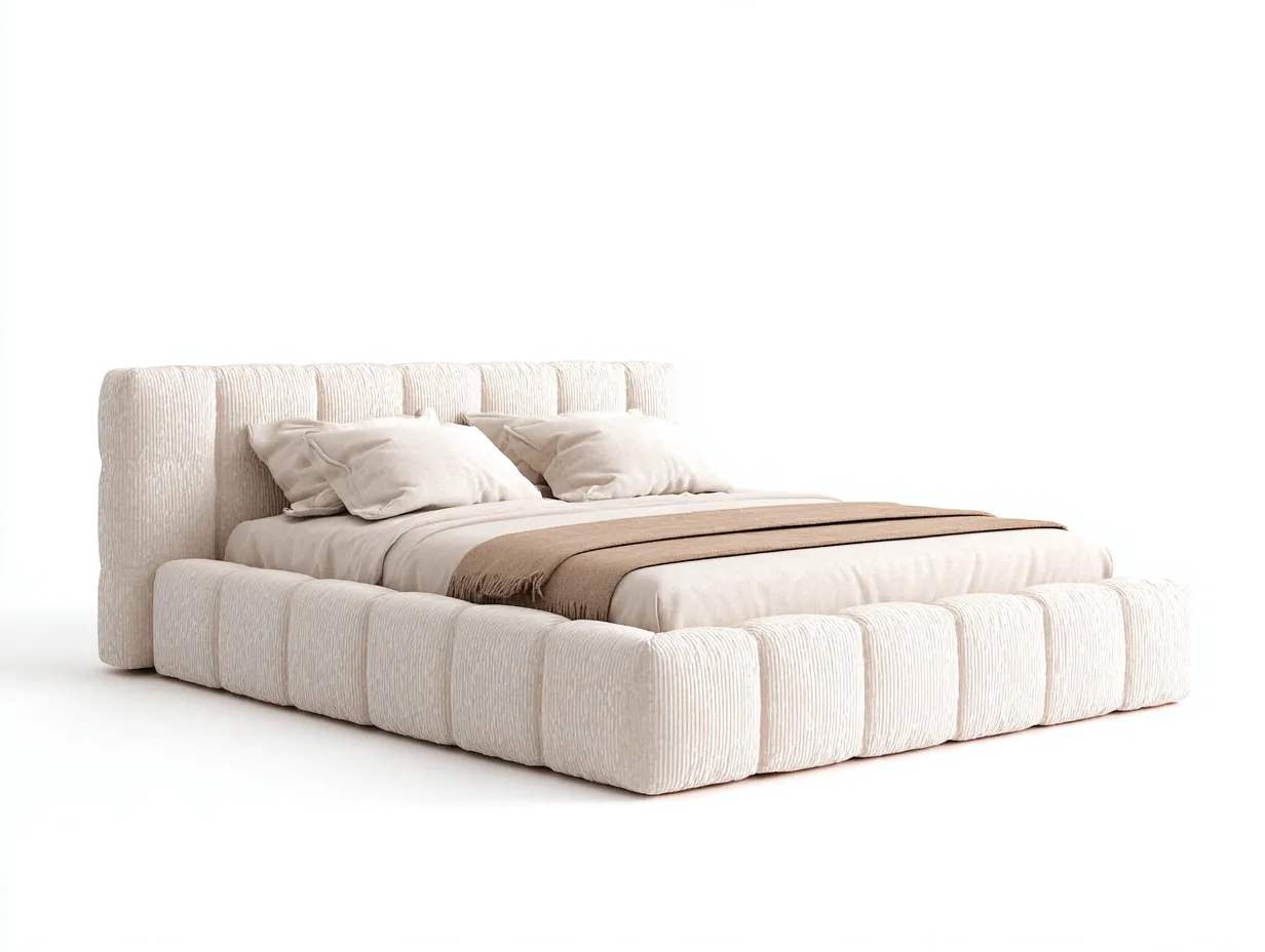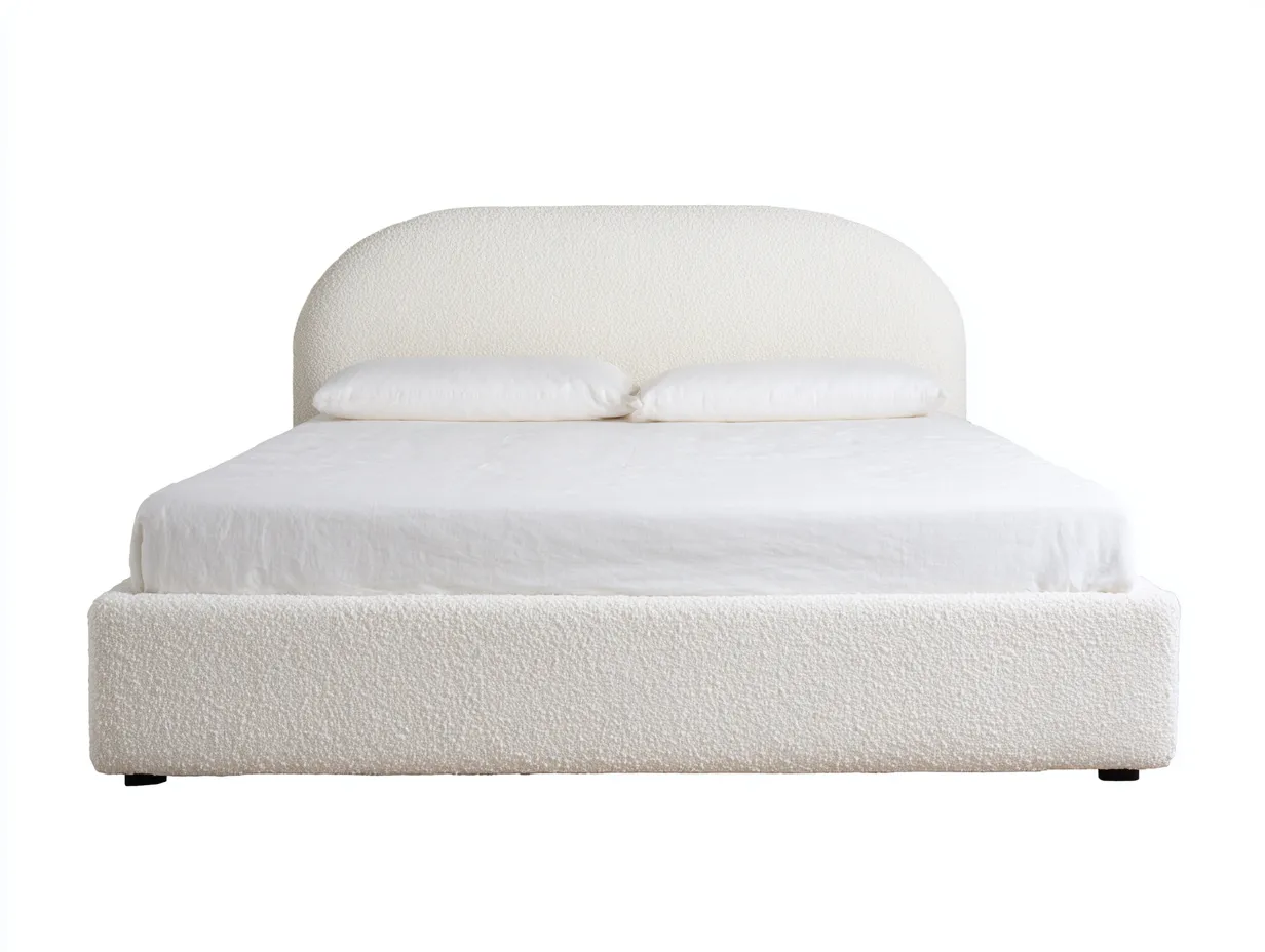 Lit double rembourré 200 x 180 x 96 cm en tissu bouclé - ivoire - pour chambre - style contemporain
