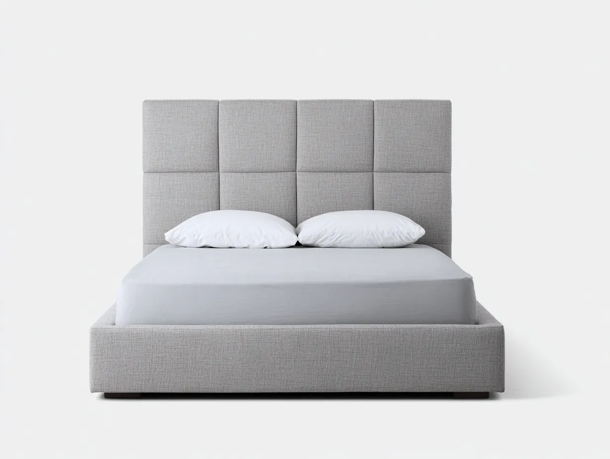 Lit double rembourré 200 x 180 x 120 cm en tissu - gris clair - pour chambre - style contemporain