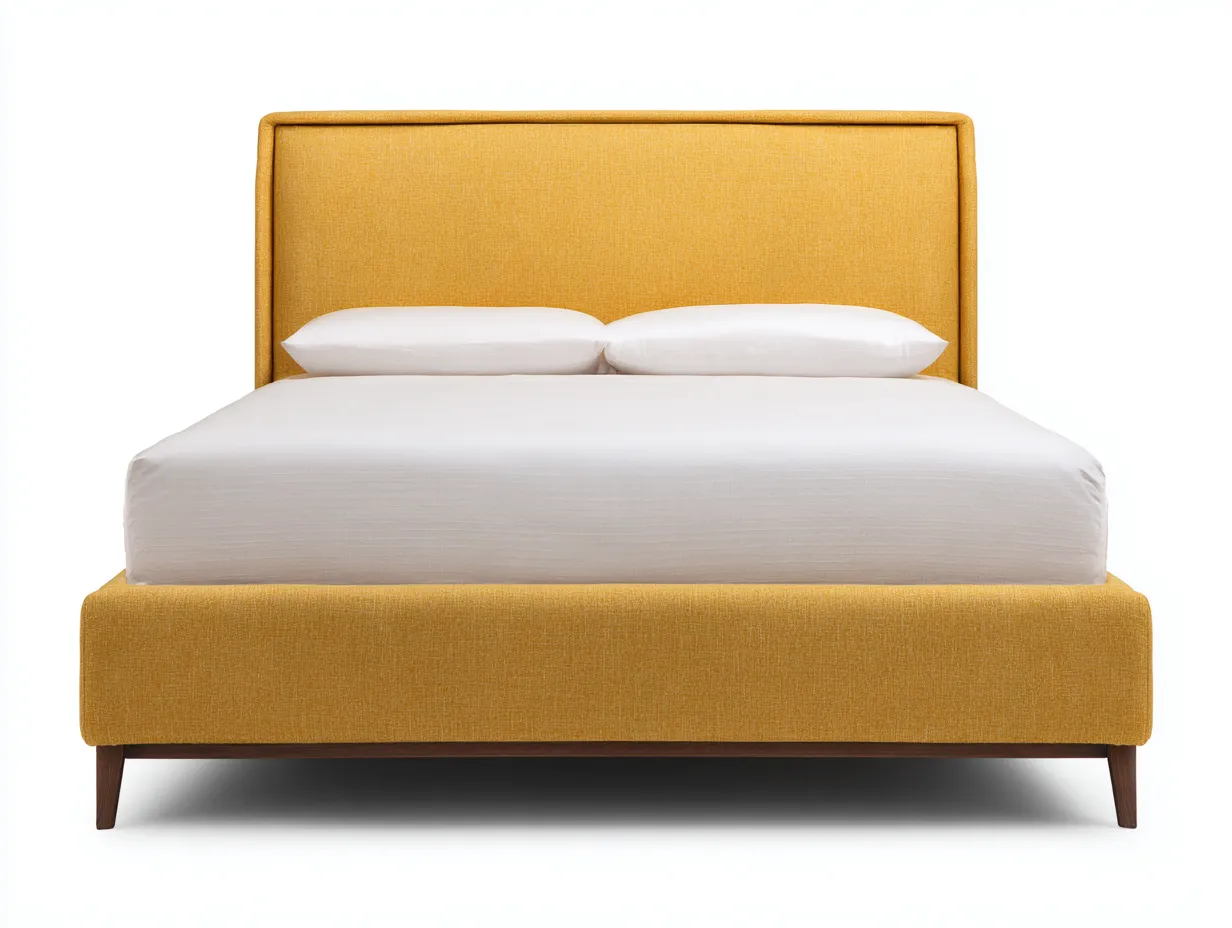 Lit double tapissé 200 x 180 x 122 cm - tissu texturé jaune moutarde - style moderne - avec tête de lit rembourrée