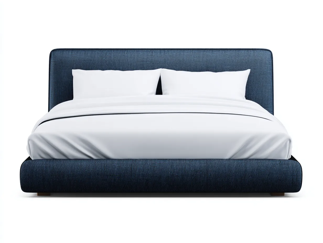 Lit double en tissu 200 x 180 x 110 cm - bleu - foncé pour chambre - moderne avec tête de lit haute et structure rembourrée