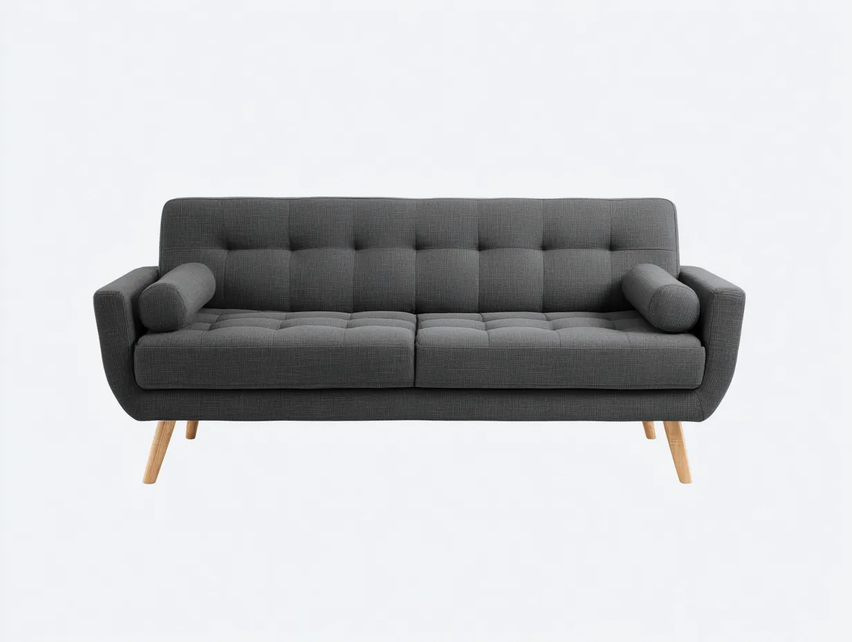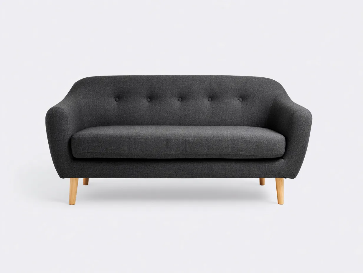 Canapé 2 places tapissé 165 x 84 x 86 cm - tissu texturé - gris anthracite - style scandinave moderne - avec dossier boutonné