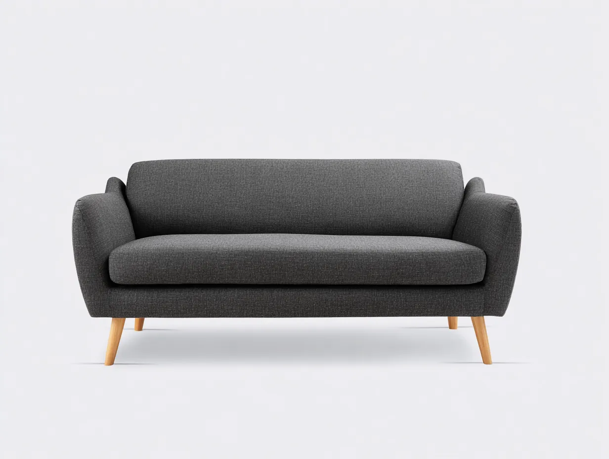 Canapé 2 places tapissé 160 x 86 x 84 cm - tissu texturé - gris foncé - style nordique - avec base en bois apparente
