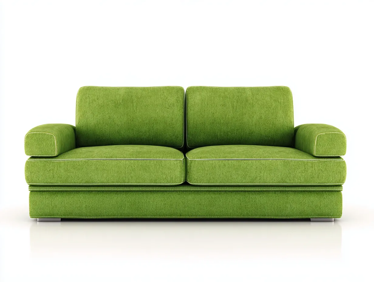 Ce canapé rembourré deux places attire le regard par sa teinte vert pomme et ses dimensions généreuses, et constitue un choix idéal pour apporter une touche de fraîcheur au salon. Son dessin horizontal, souligné par des surpiqûres contrastées, met en valeur une silhouette large et stable. L'ensemble conserve une lecture visuelle nette, adaptée aux intérieurs contemporains recherchant une assise compacte mais expressive.